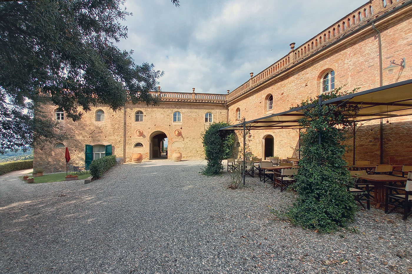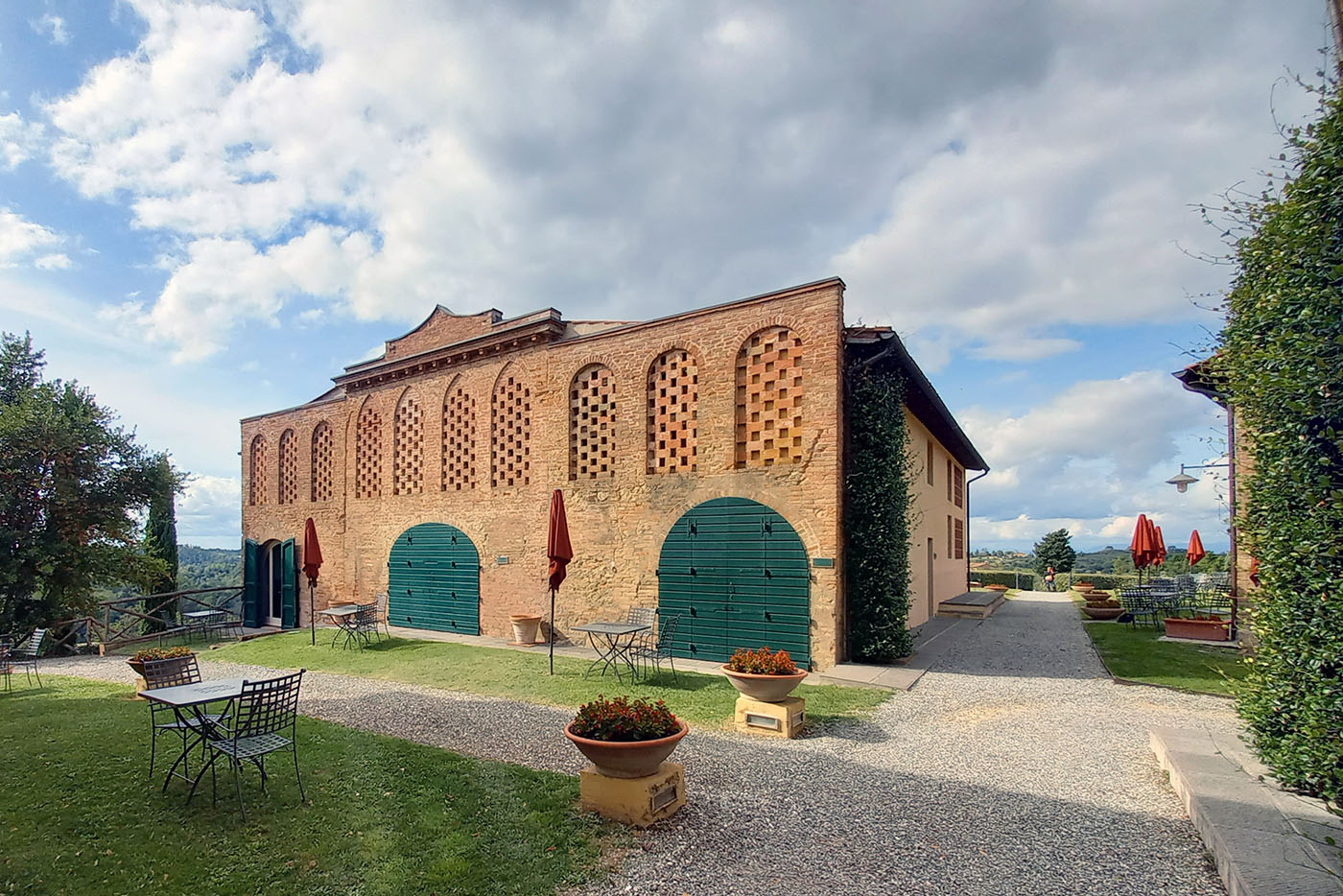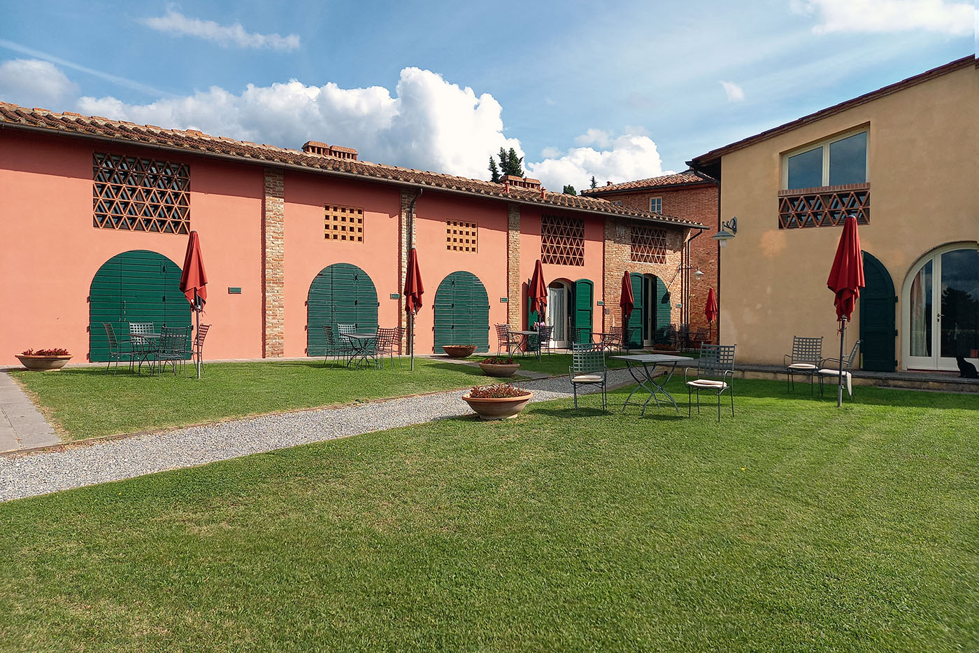 Recupero di un borgo per convertirlo in attività turistica in sintonia con gli indirizzi programmatici economici e urbanistici del Comune di Palaia. Il centro aziendale è il risultato della ristrutturazione di un’aggregazione di edifici a uso agricolo (frantoio, cantine, stalle, essiccatoi) in stato di completo abbandono ma di notevole interesse architettonico. L’architettura rurale dell’intero edificato e l’impianto tipologico dello stesso consentono un possibile riuso degli ampi spazi come attrezzature collettive (convegni, bar, ristorante, spazi comuni, ecc.). I piani superiori, comprese le grandi soffitte, vengono destinati a residenza turistica (alloggi per vacanze, casa albergo). Il progetto di restauro del centro aziendale ha posto particolare attenzione alle antiche decorazioni, tuttora visibili sull’intonaco esterno, al fine di conservare l’atmosfera originaria del vecchio centro agricolo-aziendale.